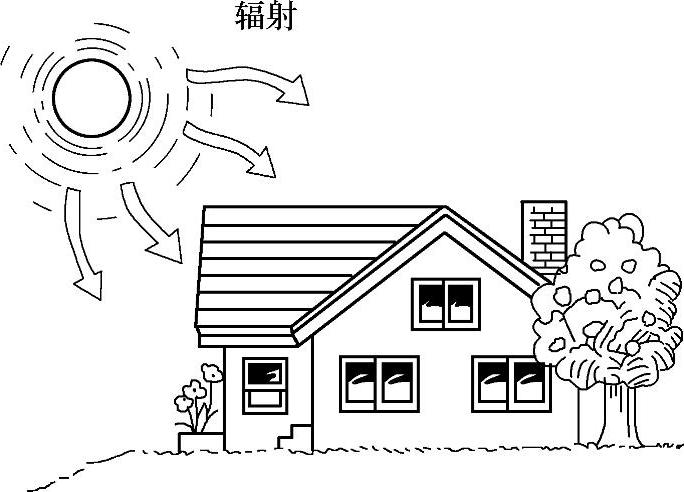 (3)辐射 物体之间在不接触的情况下,高温物体将热量直接向外传给低温物体的传递方式,叫做热的辐射,如图1-11所示。