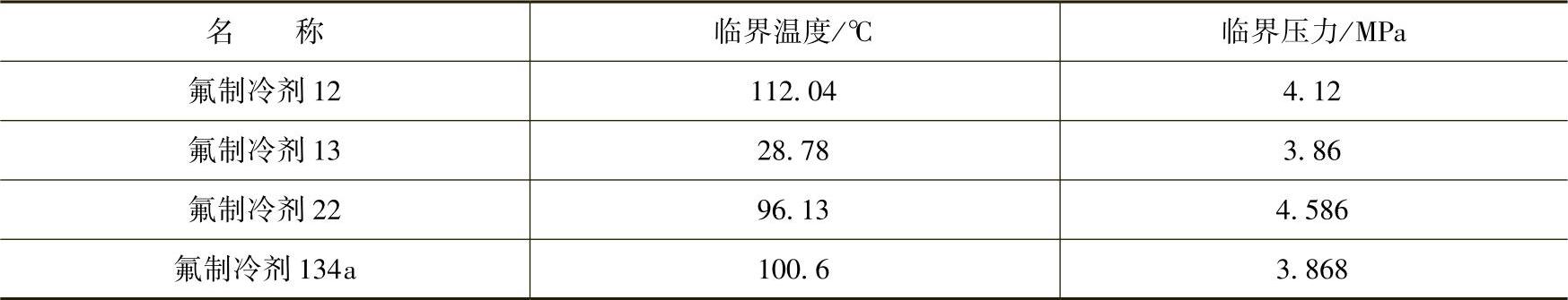 表1-4 几种氟制冷剂的临界温度与临界压力