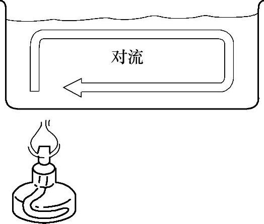 (2)对流 当液体或气体的温度发生变化后,其比重也随之发生变化。温度低的比重大,因重力作用而向下流动;温度高的比重小,向上升,从而形成对流。由于液体或气体本身的比重变化而形成的对流称为“自然对流”;若由于外力作用,使气体或液体的流速加快,则称为“强制对流”,如图1-10所示。