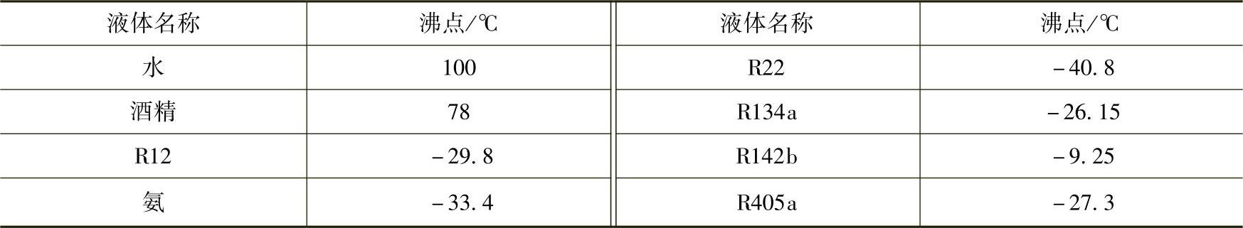 通常所说的沸点都是指液体在一个大气压下的饱和温度。对于不同的液体,在同一压力下,它的饱和温度也是不同的,见表1-3。