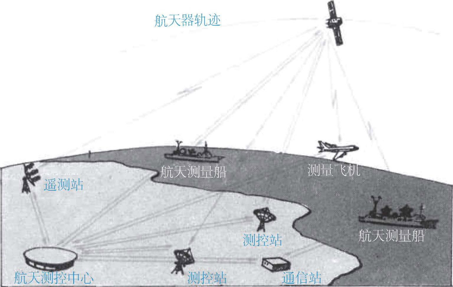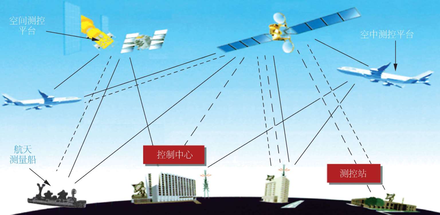 航天测控通信系统由控制中心、若干测控站(包括航天测量船),以及空中/空间测控平台(如测量飞机、跟踪与数据中继卫星等)组成。