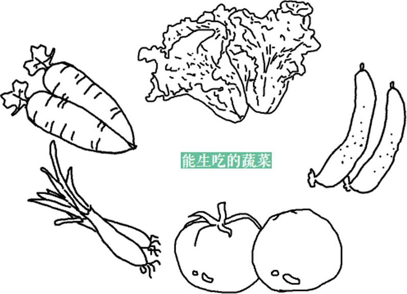 生吃蔬菜省时省力省火,营养全。可以生吃的蔬菜,罗列起来太多了:黄瓜、西红柿、大蒜、大葱、韭菜、香菜、生菜、山野菜、青椒、彩椒、苦菊、穿心莲、大萝卜、胡萝卜、茄子、大白菜、芹菜、洋葱、莴苣、莴苣叶……如此丰富,甚至可以让你远离烟火,重返原始时代。