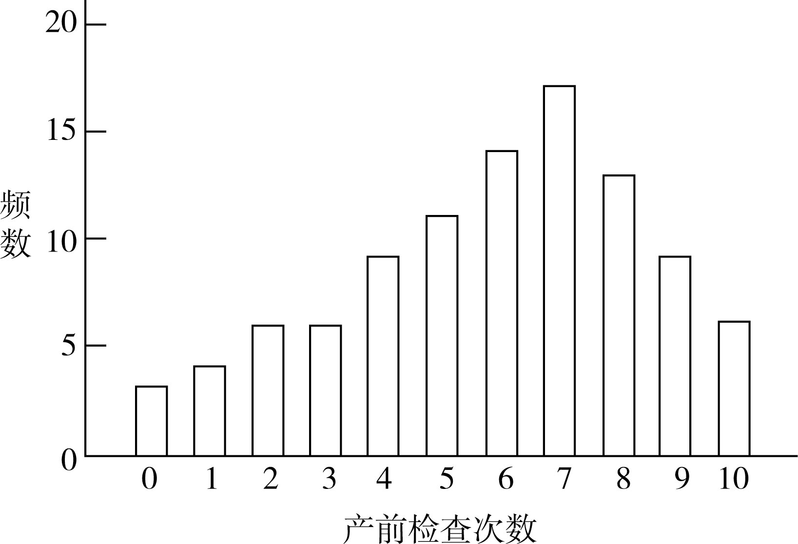 图3-2 2013年某保健院100名产妇产前检查次数频数分布