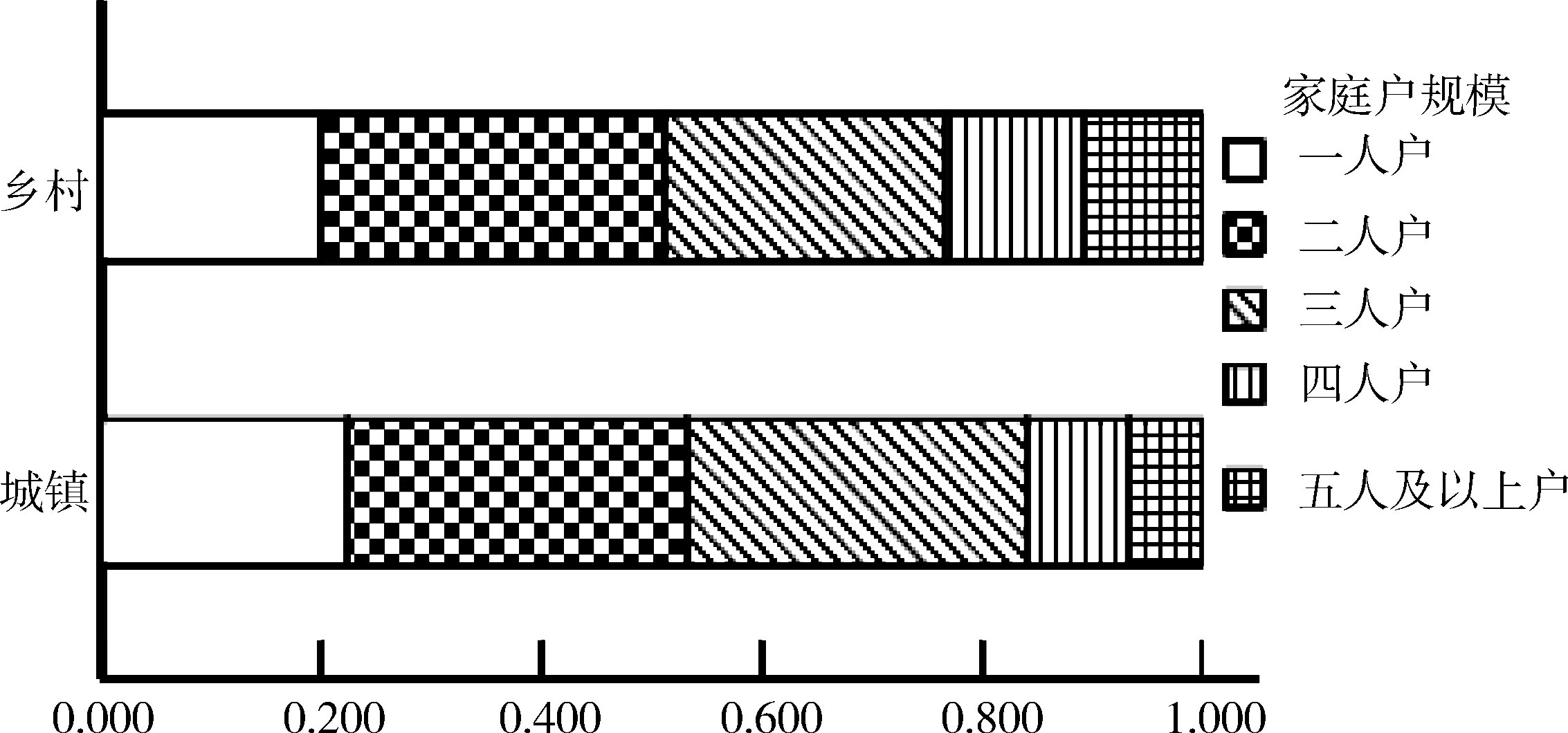 图3-9 2012年北京城乡家庭户规模构成