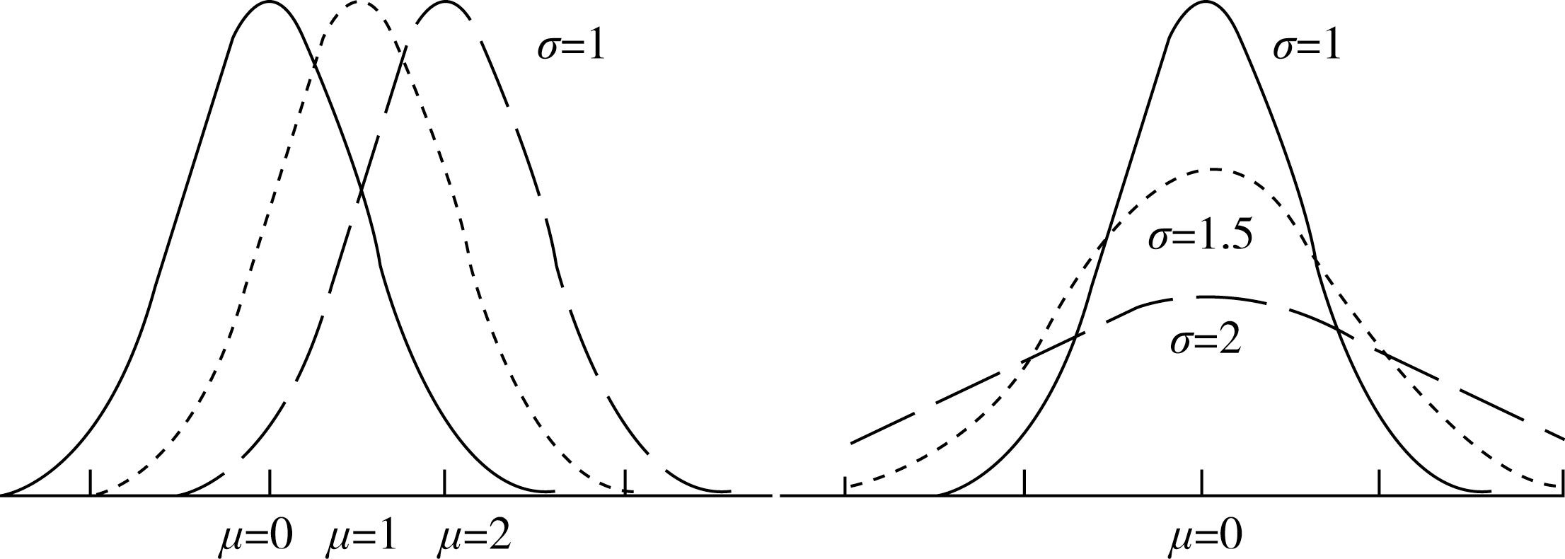 图4-1 不同的 μ 和 σ 的正态分布曲线
