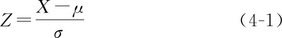 式4-1为 Z 转换,其目的就是把正态随机变量 X 转换为 μ =0, σ =1的标准正态变量。