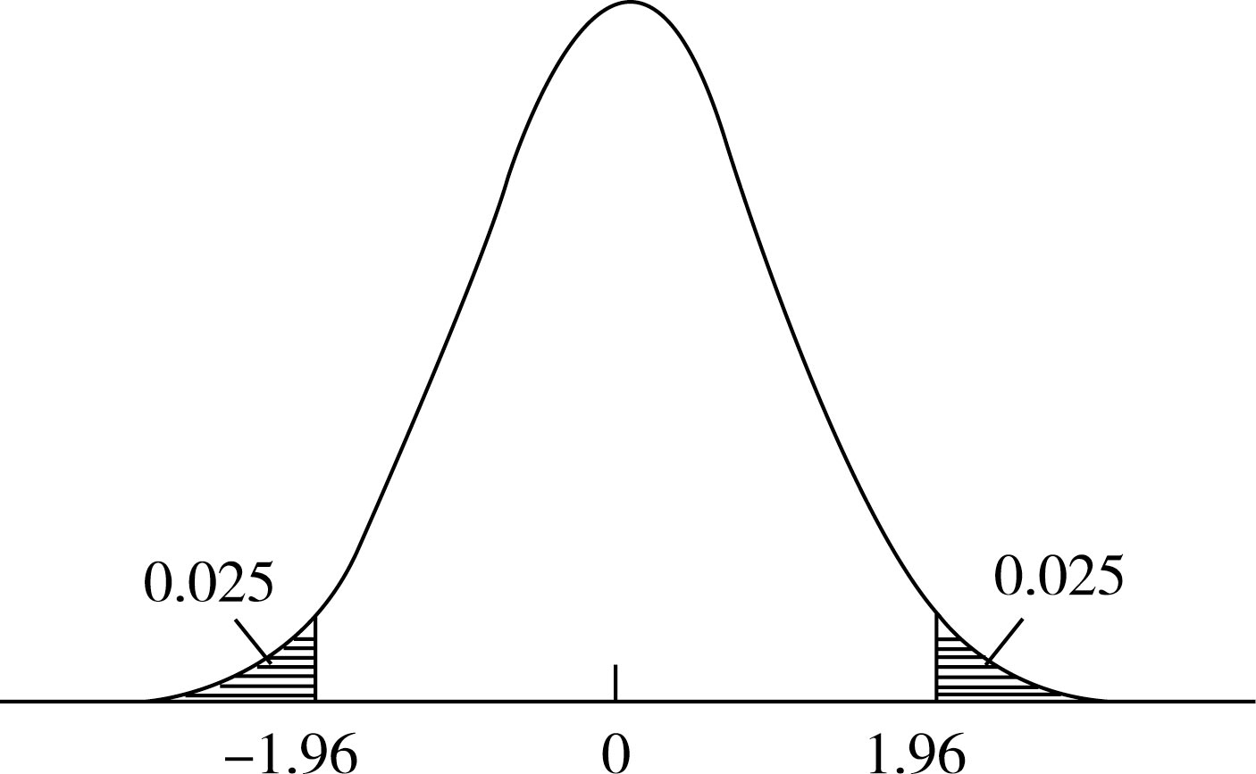 图4-4 1.96在标准正态分布中的意义