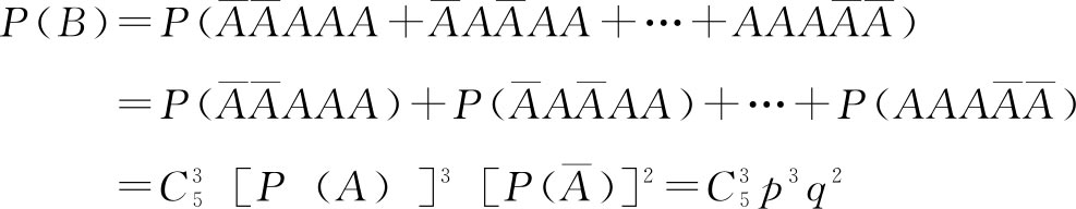 【例4-3】 某药治某病的治愈率为 p ,求治5例愈3例的概率。