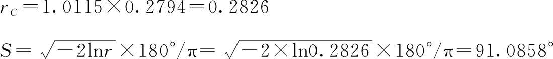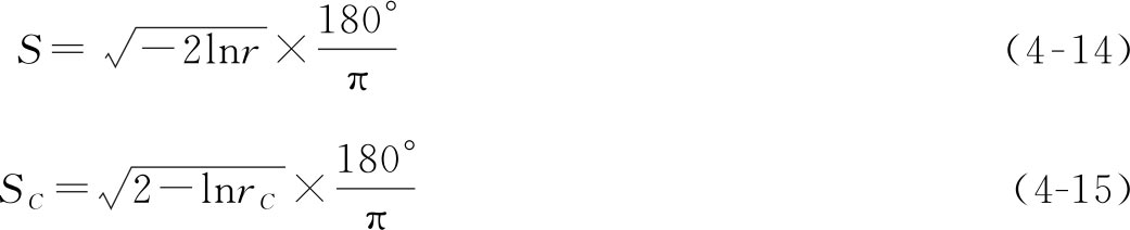 角离差是平均角离差的简称,也称角标准差或圆标准差,表示圆形分布资料的离散性。角离差 S 及分组校正 S C 公式为: