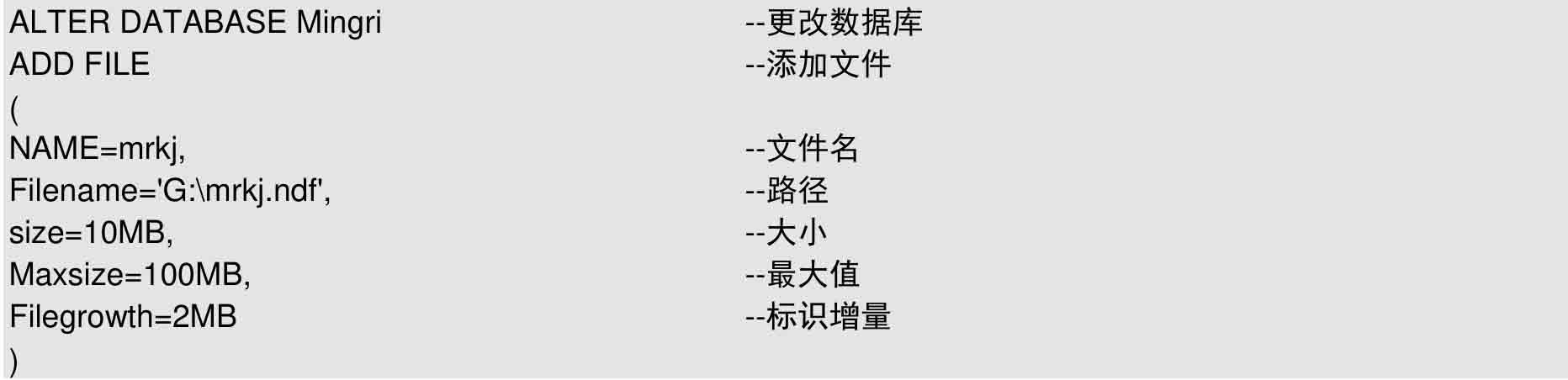 TO FILEGROUP:指定要增加文件到哪个文件组。