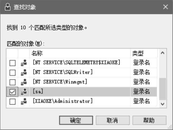 (6)在“匹配的对象”列表框中选择数据库的所有者sa选项,单击“确定”按钮,完成数据库所有者的更改操作。
