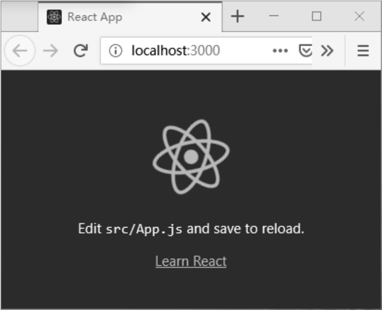 通过浏览器访问地址(http://localhost:3000)就可以看到项目启动后的内容了,具体效果如图1.6所示。它展示的是一个默认的React项目运行后的效果,读者应该感到很振奋人心吧。