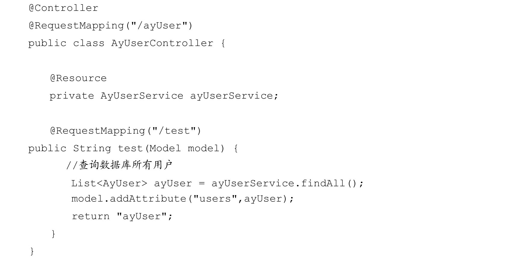 我们在spring-boot-book-v2项目目录/src/main/java/com.example.demo.controller下开发控制层类AyUserController.java,同时把AyUserService服务注入到控制层类当中。具体代码如下: