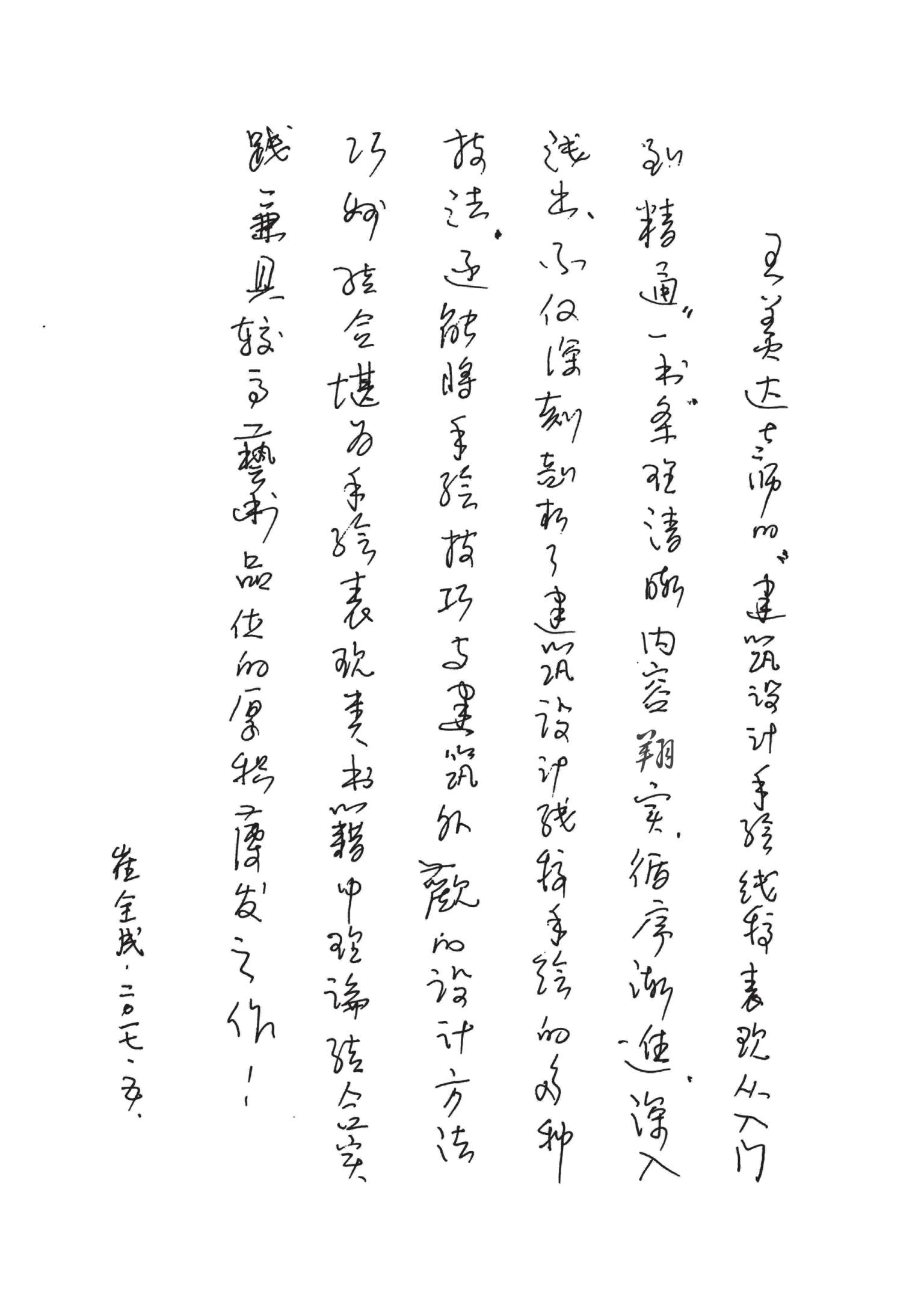 本书不仅详细讲解了建筑设计手绘基础层面的理论和技巧,还加入了很多场景难度较大的建筑线稿手绘演示过程和优秀的建筑线稿手绘作品示范,甚至涉猎建筑外观设计的技巧和方法,具有广泛的适用性和应用性,适合建筑设计、城市规划、环境艺术、风景园林等相关专业的高校在校生、设计师和手绘爱好者学习。无论你是手绘初学者,还是已经具有一定手绘基础的读者,均可在阅读本书的过程中有所收获。 HTkMZYa48uoZFN85JjCYjpRwWaUA076YnkTvoa4m9X7eq70uUtGtgqG1ga9c7sSD