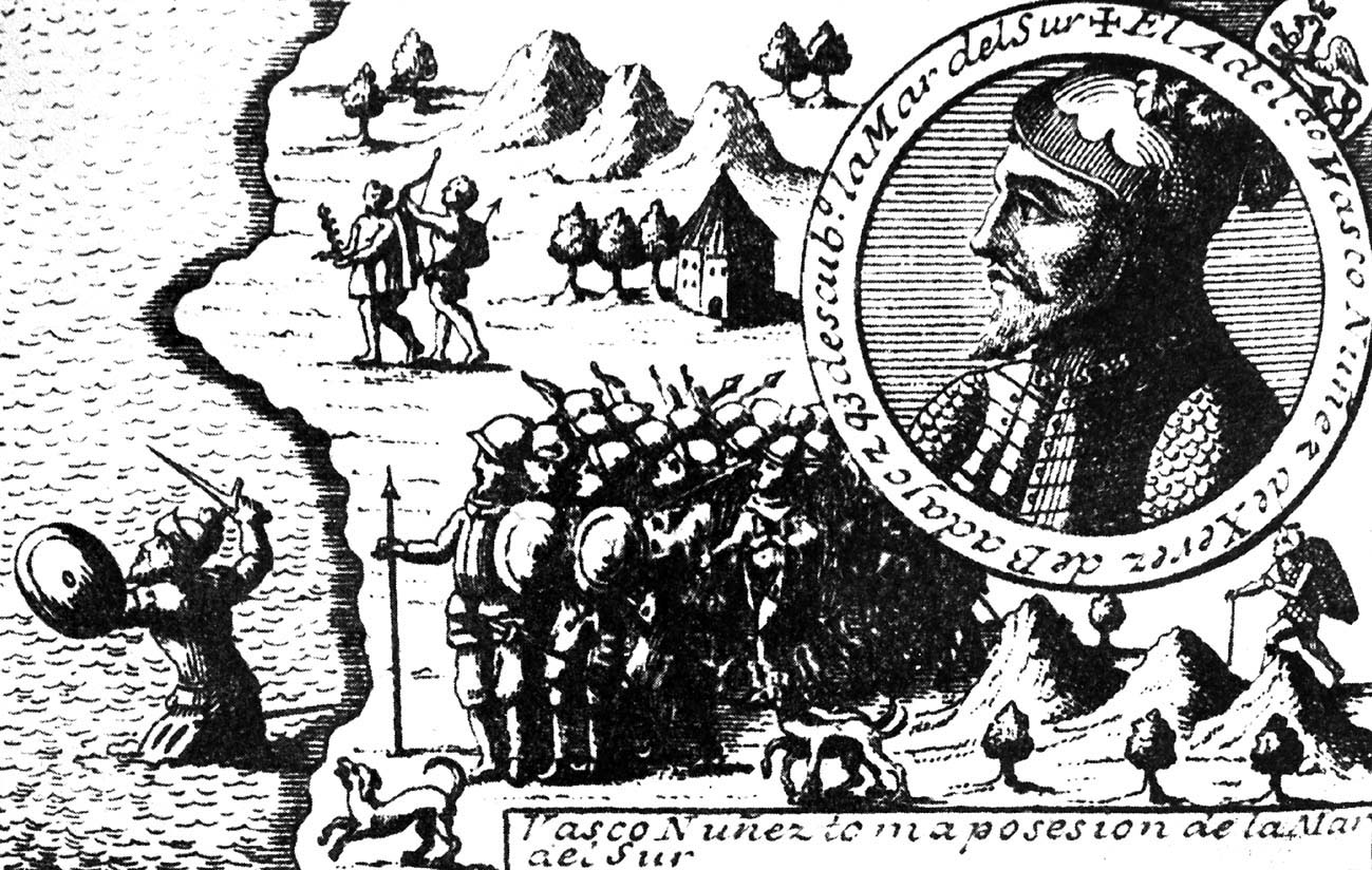 在场所有的西班牙人都重复一遍这一誓词。他们宣誓的声音一时压过海潮拍岸的隆隆轰鸣。每个人都用海水沾湿一下自己的嘴唇。文书安德雷斯·德·巴尔德拉瓦诺把这占领海洋陆地的仪式记录在案,用以下话语结束他的这份文件:“这二十二人连同文书安德雷斯·德·巴尔德拉瓦诺,是第一批把自己的脚伸进南海的基督徒,大家用手试了试海水,并用这海水沾湿他们的嘴巴,看看这是不是和另外一片海洋的水同样是咸水。当他们发现,这也是咸水,便都向上帝表示他们的感谢。”