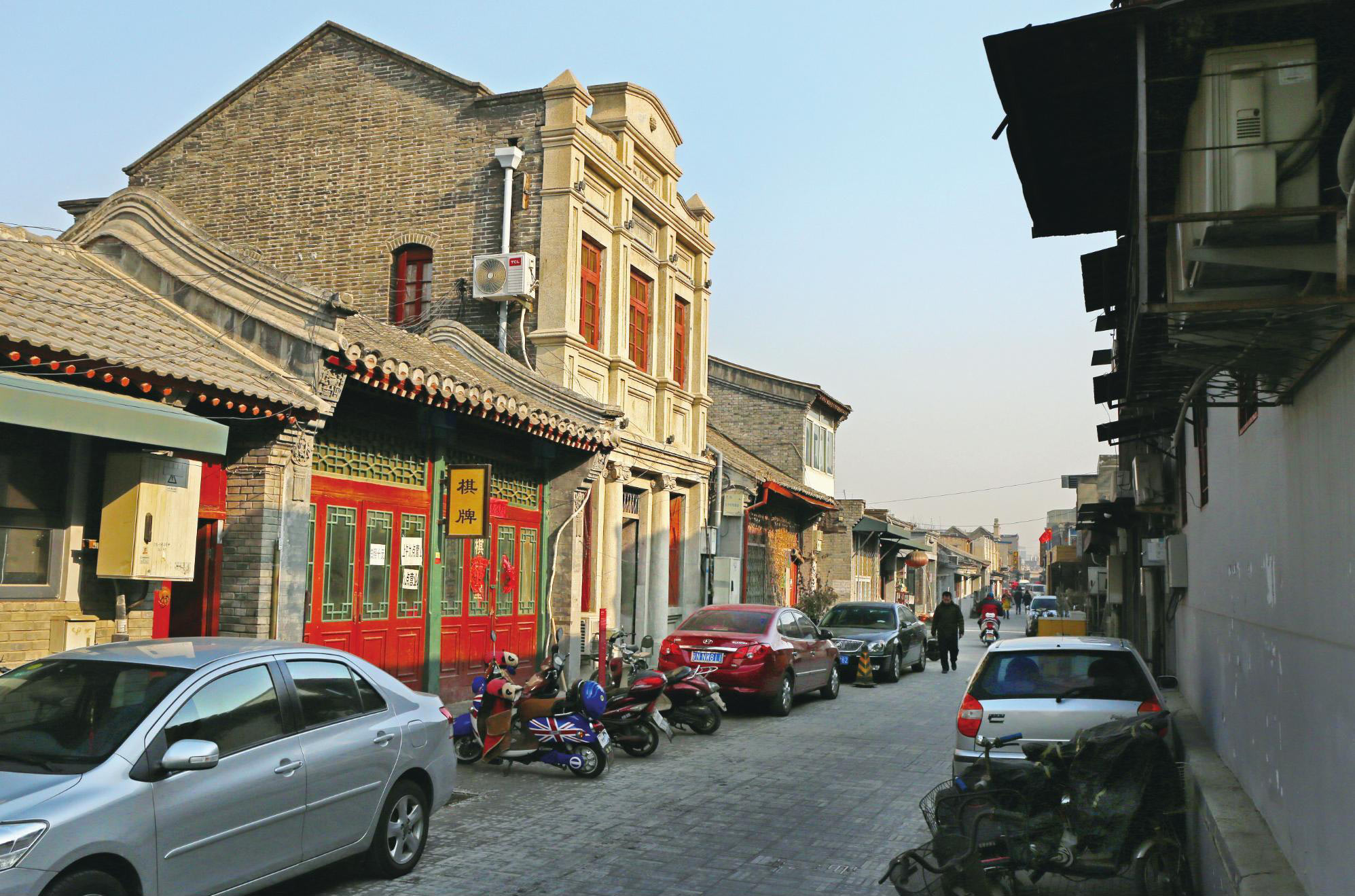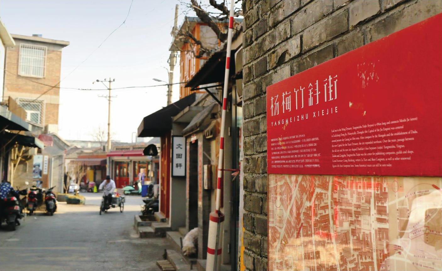 当年的书局一度都沦为了大杂院,很多甚至再也找不到一点痕迹。即便如世界书局、正中书局和儿童书店这些还能寻到旧址,但也已经残破不堪。它们“镶嵌”在了半新不旧的街道中,显得有些不伦不类,但新旧交替并行,似乎已经成了杨梅竹斜街的基调。当年在这一带,曾有一座小庙叫玉皇殿,这座庙历史悠久,建于明万历三十五年(1607年)。我曾读过兵部尚书王象乾为庙宇撰写的碑文,上面说这里为“龙脉交通车马辐辏之地也”。古建筑学家王世仁先生在解释这个“龙脉”时,特别指出了像杨梅竹这样的斜街连接着元明两朝新旧两座皇城,地理位置尤为重要。看来早在500年前,杨梅竹斜街就承担起了连接新旧空间的重任。