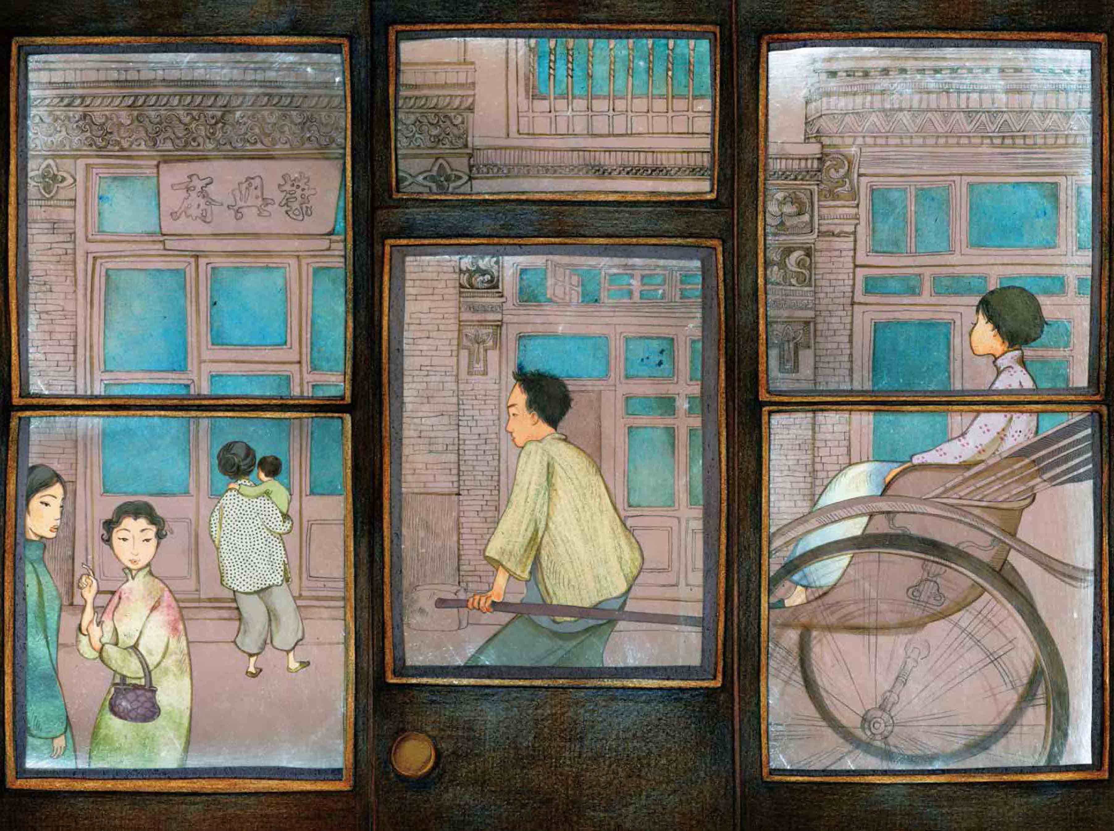 在家里罢,你坐在书房里,窗子以外的景物本就有限。那里两树马缨,几棵丁香;榆叶梅横出风雅的一大枝;海棠因为缺乏阳光,每年只开个两三朵——叶子上满是虫蚁吃的创痕,还卷着一点焦黄的边;廊子幽秀地开着扇子式,六边形的格子窗,透过外院的日光,外院的杂音。什么送煤的来了,偶然你看到一个两个被煤炭染成黔黑的脸;什么米送到了,一个人掮着一大口袋在背上,慢慢踱过屏门;还有自来水、电灯、电话公司来收账的,胸口斜挂着皮口袋,手里推着一辆自行车;更有时厨子来个朋友了,满脸的笑容,“好呀,好呀”地走进门房;什么赵妈的丈夫来拿钱了,那是每月一号一点都不差的,早来了你就听到两个人唧唧哝哝争吵的声浪。那里不是没有颜色、声音、生的一切活动,只是他们和你总隔个窗子——扇子式的,六边形的,纱的,玻璃的!