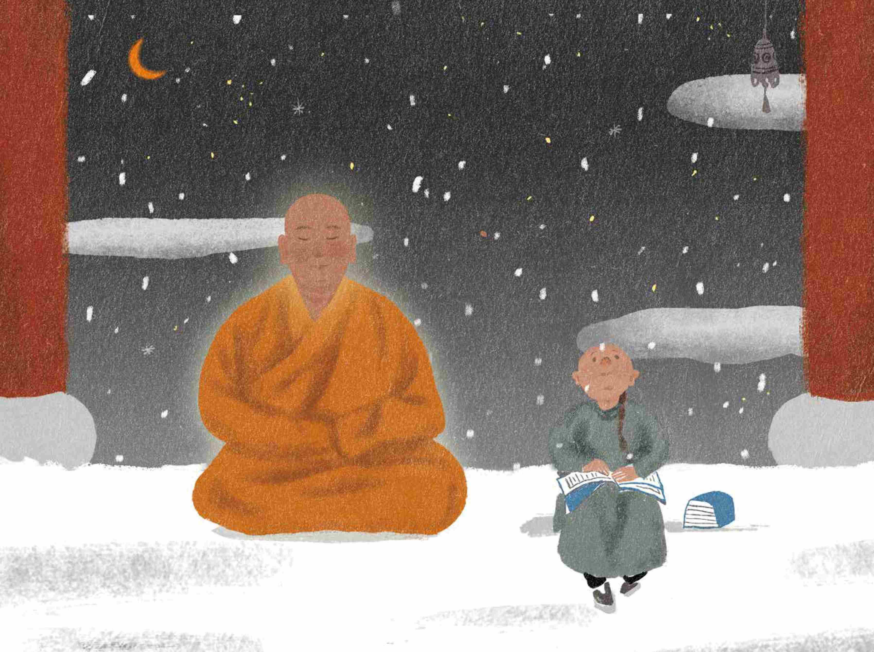 他的庙里不应佛事,赶到有人来请,他便领着僧众给人家去唪真经,不要报酬。他整天不在庙里,但是他并没忘了修持;他持戒越来越严,对经义也深有所获。他白天在各处筹钱办事,晚间在小室里做功夫。谁见到这位破和尚也不曾想到他曾是个在金子里长起来的阔大爷。
