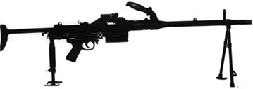 通用机枪,亦称两用机枪,以两脚架支撑可当轻机枪用,装在枪架上可当重机枪用。大口径机枪,口径一般在12毫米以上,可高射2000米内的空中目标、地面薄壁装甲目标和火力点。