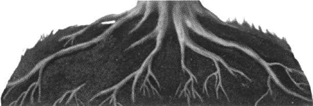 植物一般分地上和地下两部分。地下的部分,我们叫它根系。根系是由几种根组成的,一种最初从种子幼胚的胚根长出来的,长得比较粗壮,能够垂直往土壤深处钻,叫做主根。主根可以向四面八方分叉,形成许多侧根。侧根又能够再次分叉,形成三级根、四级根等。主根和侧根上可以生出很多微小的根,嫩根先端还有许多白色的根毛,它们是吸收水分和养分的尖兵。