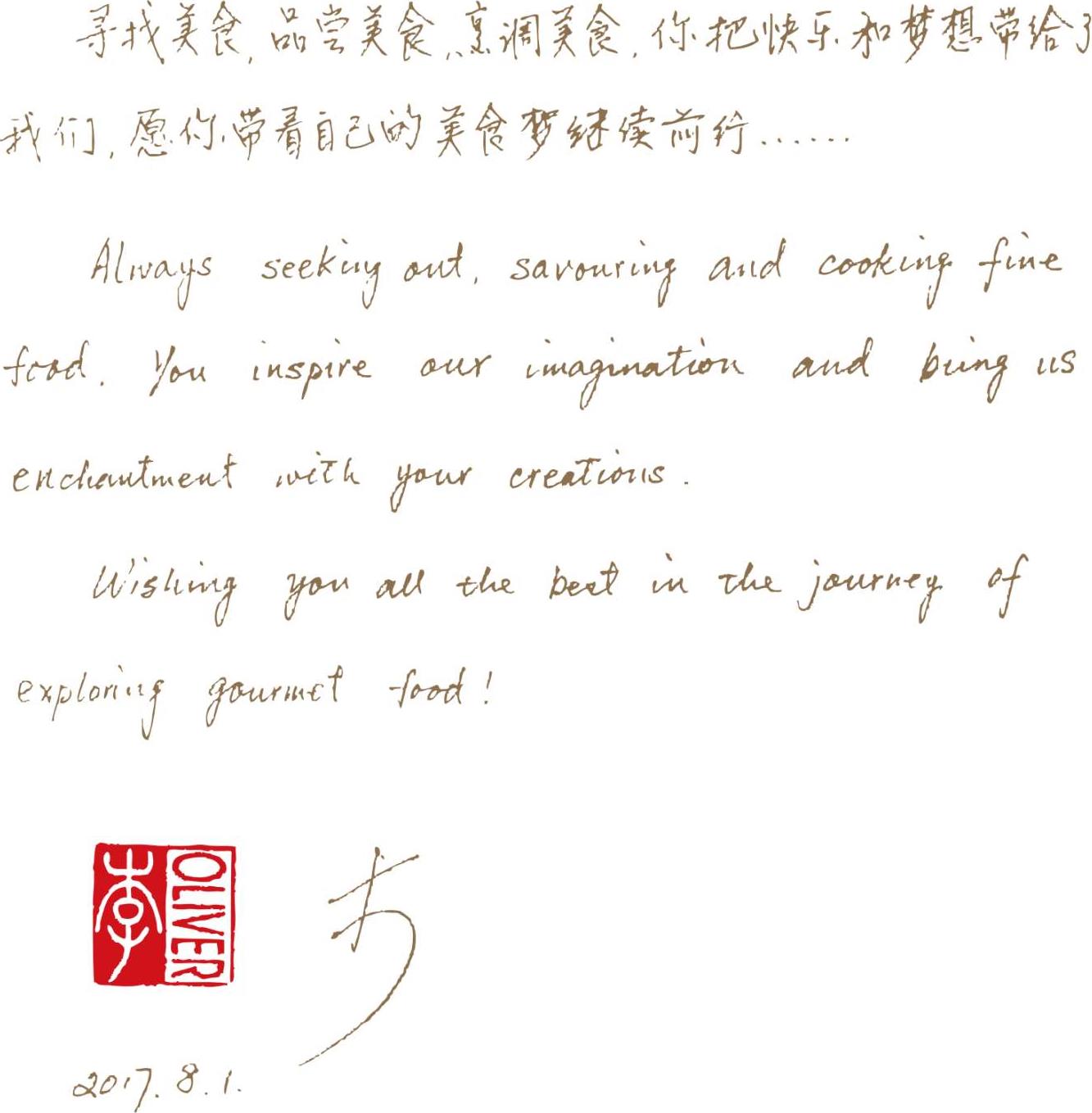 These are the words of Chef Oliver Li. He has more than 30 years’ experience in the RestaurantIndustry. He was the former Executive Chef at the Western Cuisine Department of Shanghai HiltonHotel, Toronto Hilton Hotel and is the current instructor at the Chef’s House at George Brown College.He has won numerous awards for his accomplishments. Chef Oliver Li is regarded as one of the mostrecognized chefs in Toronto’s culinary scene.