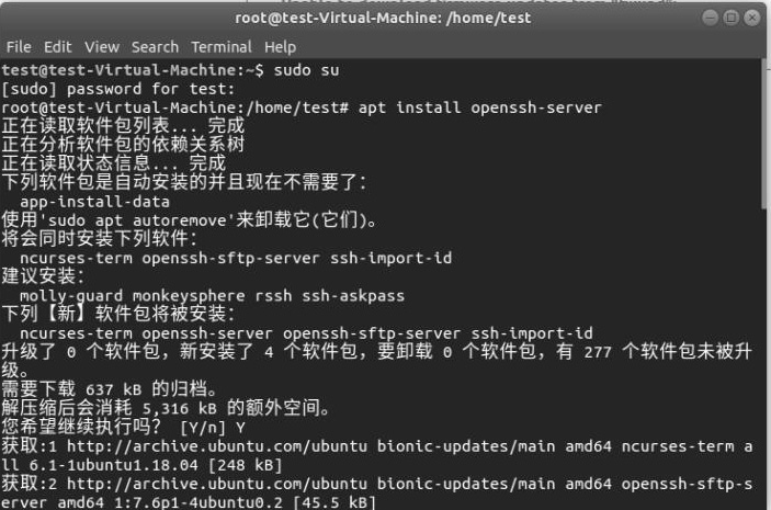 输入“apt-get install openssh-server”进行安装,如图3-26所示。