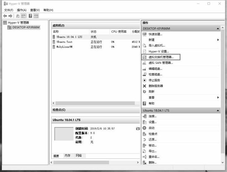首先,我们需要在Hyper-V管理器找到“虚拟交换机管理器”选项,如图3-19所示。