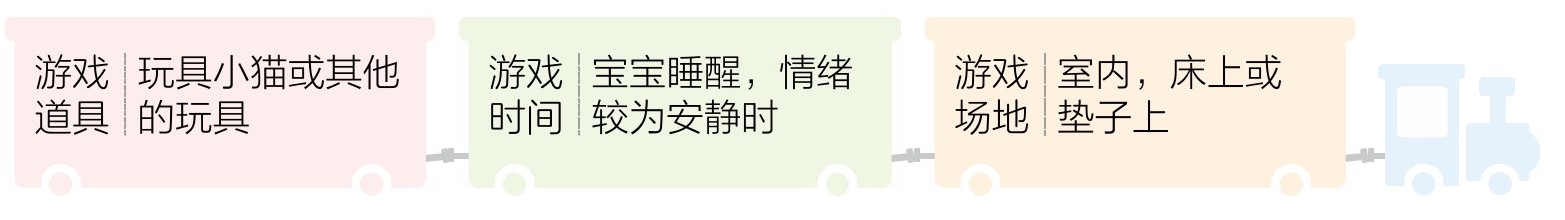在跟宝宝玩这一游戏时,声音以及玩具小猫的移动,能锻炼宝宝的听觉及视觉集中能力。