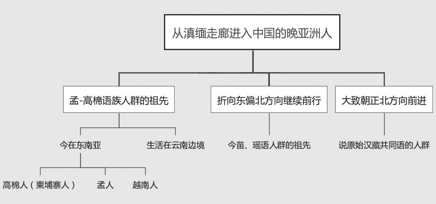 下面我们讨论一下从滇缅走廊,也就是从今天的云南省和缅甸交界地区进入中国的晚亚洲人。当然在他们不停迁徙的路上,也总会有些人不时地就地停下来,不再跟随同伴继续往前走。