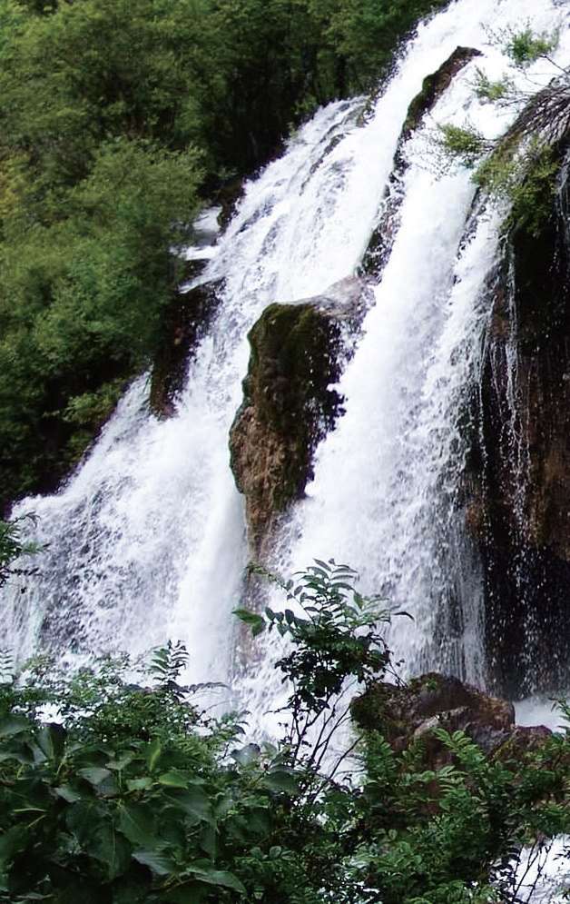 其次,短距离内峡谷基岩河床深槽形态发生束放变化的转折部位,容易出现大的瀑布。如绒扎瀑布就是从相对宽的河床到突然收窄的河床跌落下去,进入更深更狭的基岩河槽的。同时,任何巨瀑下面必有深潭,它必然会改变河床谷地的形态和水流作用的性质,这也是相辅相成的一种差异,应该说也是参与了瀑布地形的形成过程的。