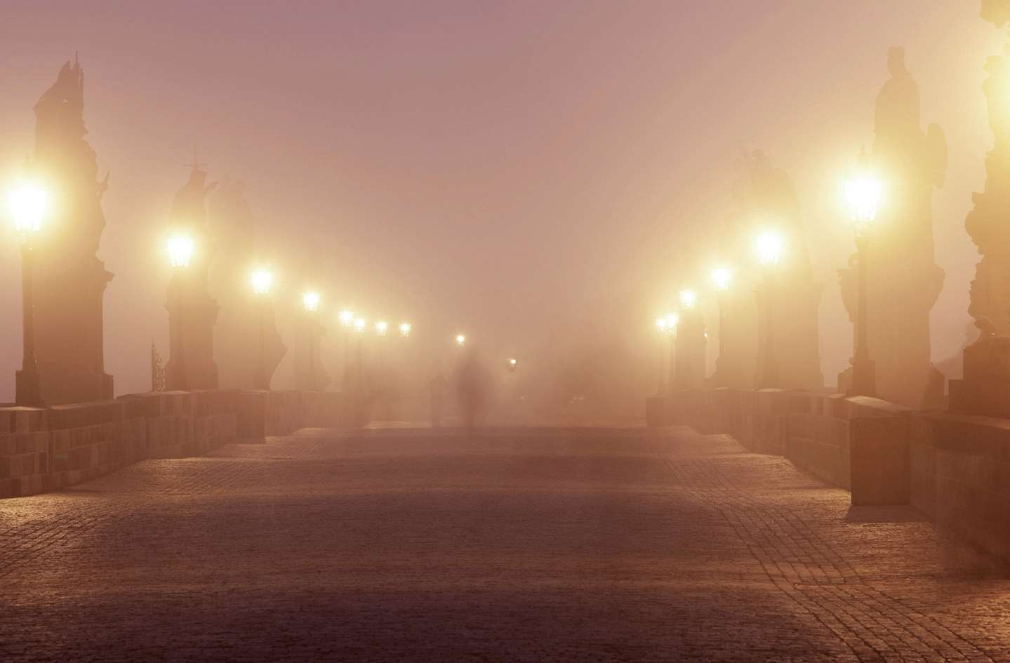 前面的车临近买普市郊时,两人回首顾望,后面是浓雾迷漫,什么也看不见,于是,他们决定停车等候后面的博士夫妇。可是,等了半小时、一小时,迷雾中依然茫无所见。道路平坦而无分叉,他们心中狐疑,转回车头来寻望。