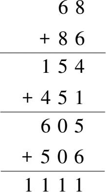 例如68,只要按上面介绍的方法,三步就可以得回文数1111。