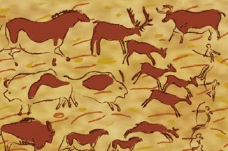 在第一组刻画中,反映了老虎、野猪和鹿构成的食物链关系。在第二组刻画中,表现了野狸吃鸡、鸡吃蜥蜴、蜥蜴吃小虫的关系。