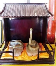 假如有蛇进入家中,蜈蚣便喷气发声。主人放蜈蚣出来,它便鞠起腰来,首尾着力,一跳有一丈来高,搭在大蛇七寸位置上,用那铁钩似的一对钳来钳住蛇头,吸蛇精血,至死方休。