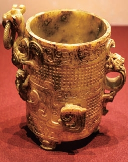 如中山靖王刘胜王后的陪葬品中发现了一些金银错器物,一件“朱雀衔环杯”上复杂多变的花纹都是用金线错出来的。