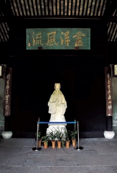 流觞亭左边是王右军祠,是纪念王羲之的祠堂。王羲之当时任右将军、会稽内史,因此人们常称他为“王右军”。