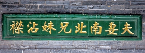 门楼 城门上的楼或者府邸门上的楼。是富贵的象征,所谓“门第等次”即为此意,故名门豪宅的门楼建筑特别考究。门楼顶部有挑檐式建筑,门楣上有双面砖雕,一般刻有“紫气东来”“竹苞松茂”的匾额。有些豪门大宅在大门左右各放一对石狮子或一对石鼓,有驱祟保安之意。