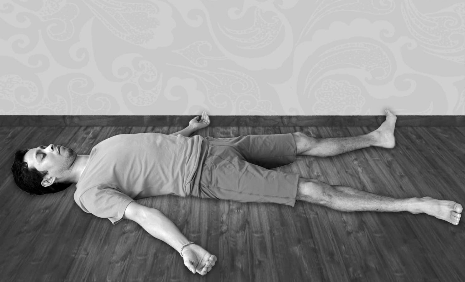 仰躺在地上,就像尸体一样。这就是摊尸式(Savasana)。摊尸式消除疲劳,放松心灵。(见图11)