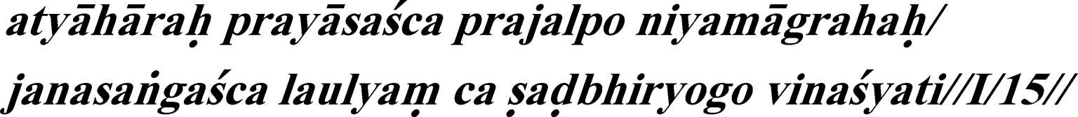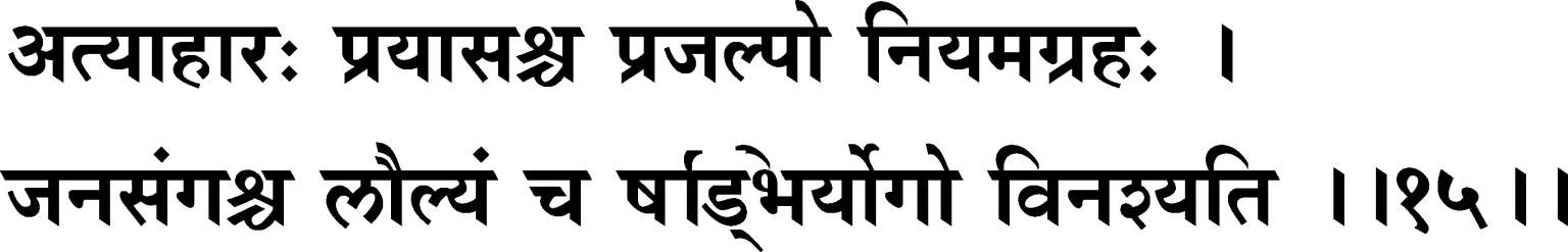 饮食过度、努力过度、说话过度、循规蹈矩(过度)、交往过度、心浮气躁——这六个因素妨碍瑜伽练习,或者使之变得无效。