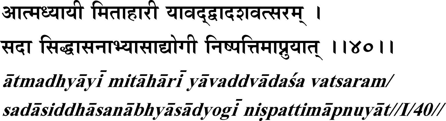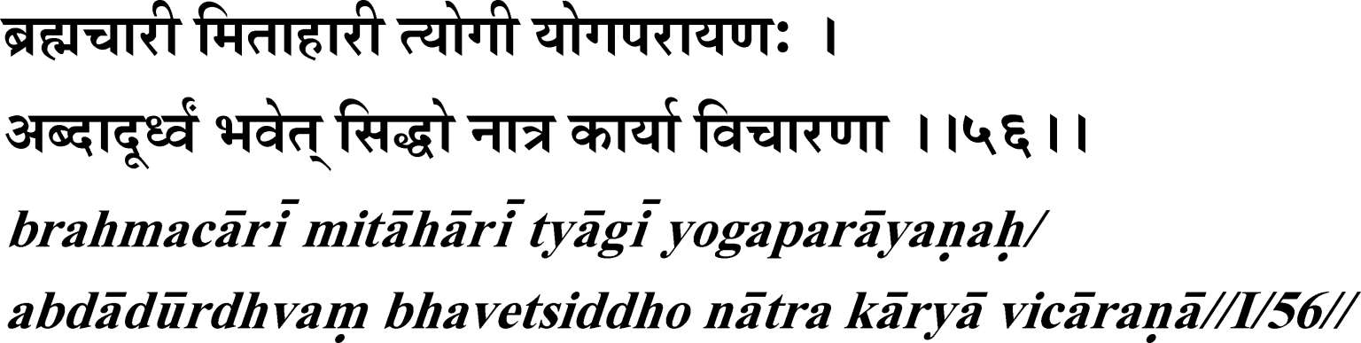 ,饮食节制,弃绝一切,专注于瑜伽练习,在一年多的时间内会获得成就。在这一过程中,不应该产生任何其他的想法(即不应有所怀疑)。