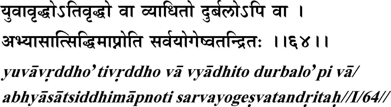 年轻人、老年人、很老的人、病人或体弱者,只要不懒惰,都可以获得瑜伽的成就。