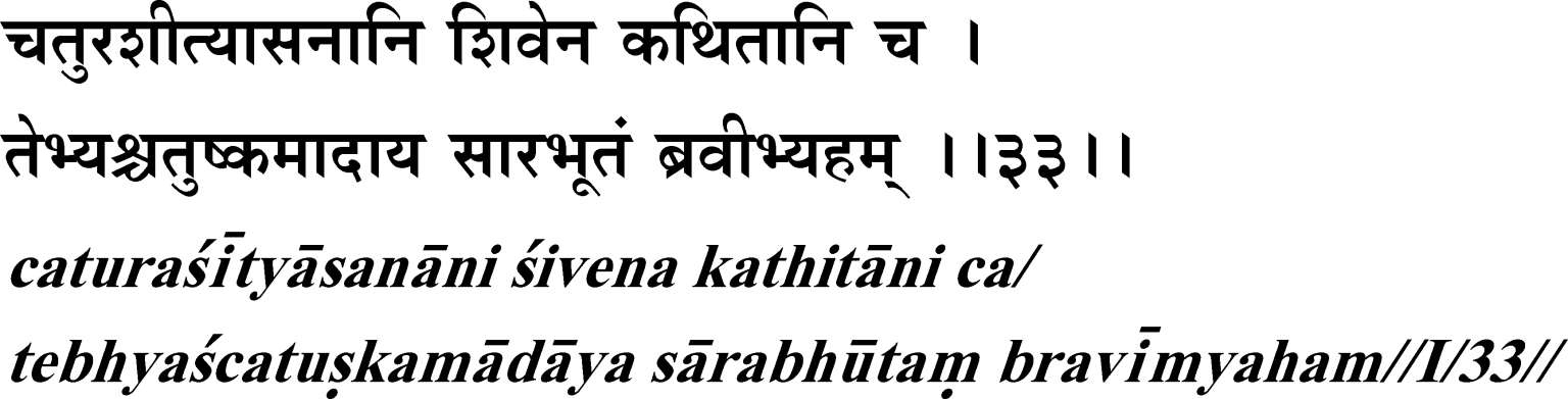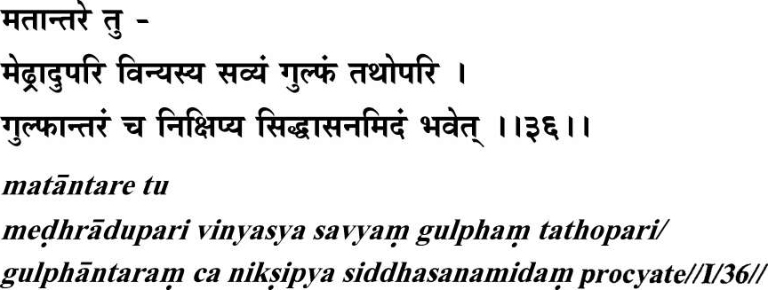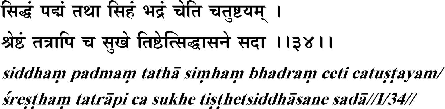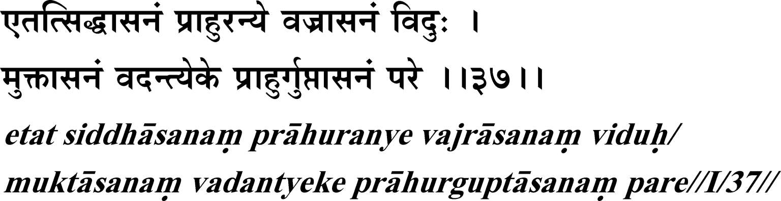 斯瓦特玛拉摩宣称,至尊希瓦描述了84种体位,这里描述的4种是84种体位中最重要的体位。这里有一种误解,即认为这4种不同的体位都是冥想式体位。这是不正确的。这4种体位,只有前2种在传统上被认为是冥想式体位,而狮子坐和蝴蝶坐不能认为是冥想式的体位。然而,人们却很难发现把这4种体位分离开来的论据。