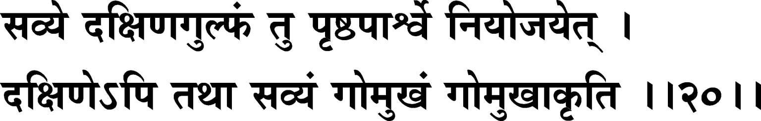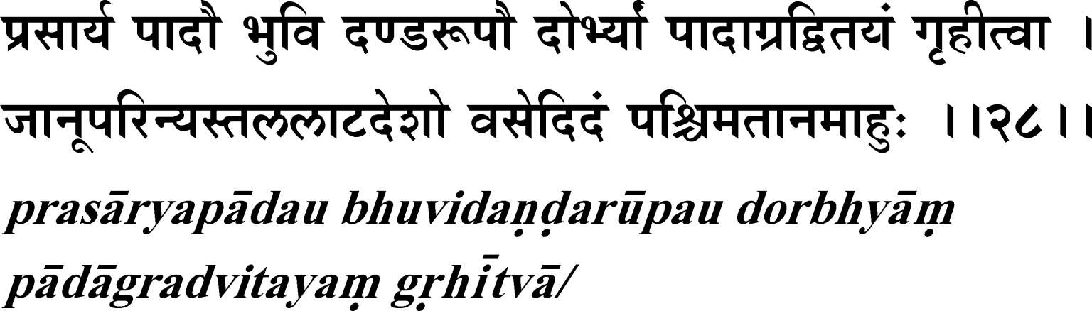 在《阿希布达尼亚本集》( Ahirbudhnya Samhita )中,还有一种对双手位置的不同安排。根据这一文本,双手要绕过背从背面抓住各自对应的脚趾。