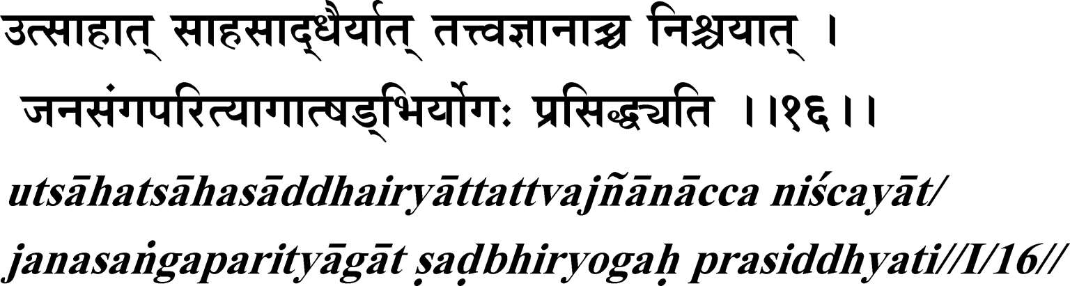 热情、勇气、耐心、正知、果断以及弃绝过多的人际交往,这六个因素将成就瑜伽。
