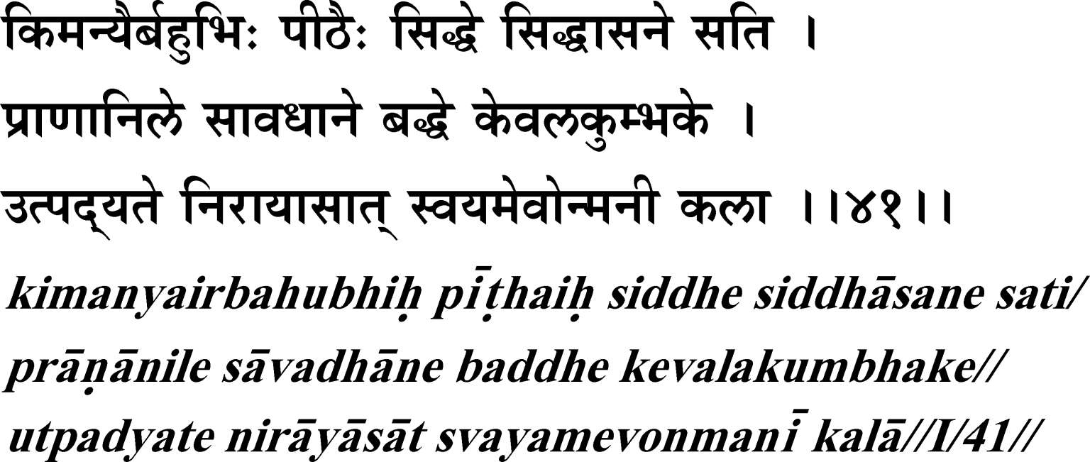 一旦获得至善坐的成就,如此之多的其他体位还有什么作用?在自发式住气法中小心保留生命气,仅仅经由它就可毫不费力地导致温曼尼卡拉,即胜王瑜伽之境界。