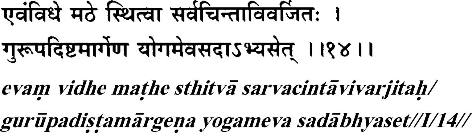 在这里,斯瓦特玛拉摩交代了他的传承谱系。斯瓦特玛拉摩是(阿迪)纳塔派的后裔。据说,玛司延德拉尊者和高罗克萨尊者是纳塔派的开创者,斯瓦特玛拉摩是同一谱系中的瑜伽士。因此,由于诸位大师(古鲁)对他的恩典,哈达瑜伽的方法被启示给了他。
