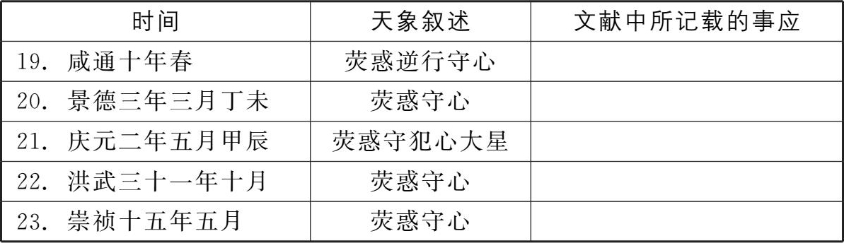 (表一)。本节即运用现代的天文知识依序对这23次“荧惑守心”的记载做简要的析论。