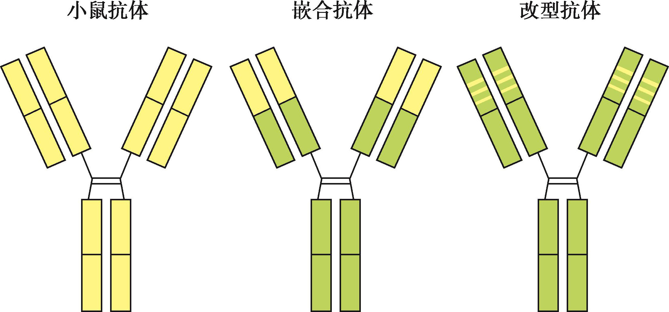 制备人源化抗体的主要目的就是在保留原抗体亲和力和特异性的同时,减少抗体的异源性,以利于抗体在临床治疗中应用(图4-9)。