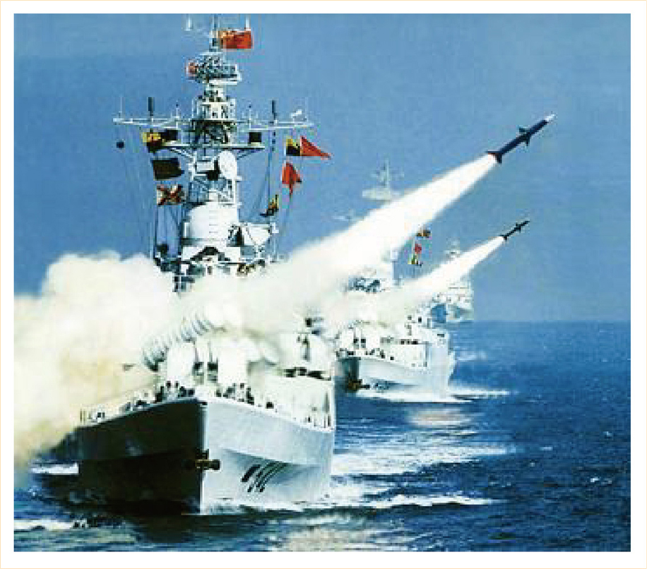 岸基部队是国家海上防御体系的重要组成部分,在发展水面舰队和水下舰队的同时,中国人民解放军海军十分重视岸基导弹部队反舰导弹系统的建设。目前,中国海军岸基导弹部队装备的大都是在 70~90 年代期间由中国专家自己研制的第一代至第三代反舰导弹统。其中,大部分为亚音速和极易被雷达发现以及制导系统抗干扰能力弱的反舰导弹。因此,就其战术、技术性能而言,这些反舰导弹远远落后于国外同代反舰导弹。但是,在密集使用这些反舰导弹的条件下,便可以对装备现代防空和导弹防御系统的单独舰艇和舰艇编队构成威胁。