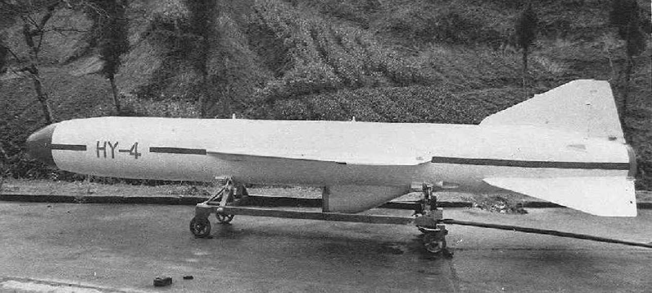 HY-4 反舰导弹是在 HY-2 反舰导弹基础上研制而成的,主要用于在复杂气象条件下摧毁大型水面舰只。尽管 HY-4 反舰导弹是按照传统的气动布局设计而成的,但是,仍对其进行了一些改进。如弹体采用流线型气动布局,其动力装置采用了一台重量为 300 千克的轻型发射助推器和一台涡轮喷气发动机,同时,在弹体中部安装了空气进气道,以确保涡轮喷气发动机正常工作。由于涡轮喷气发动机使用的是普通航空燃油,从而使导弹的发射重量减少到 2000 千克。此外,在保持原有 1170 千米/小时巡航速度的情况下,将反舰导弹的最大射程增加到 150 千米。